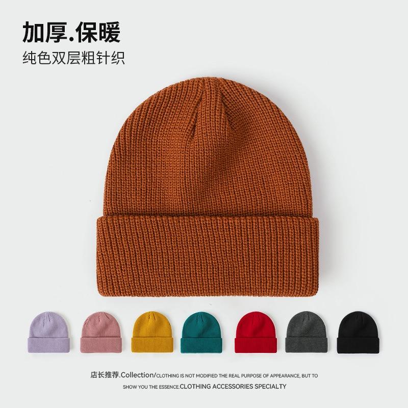 Autumn and winter solid color knitted hats for men and women, cold protection, ear protection and warmth, double-layer thickened wool hats