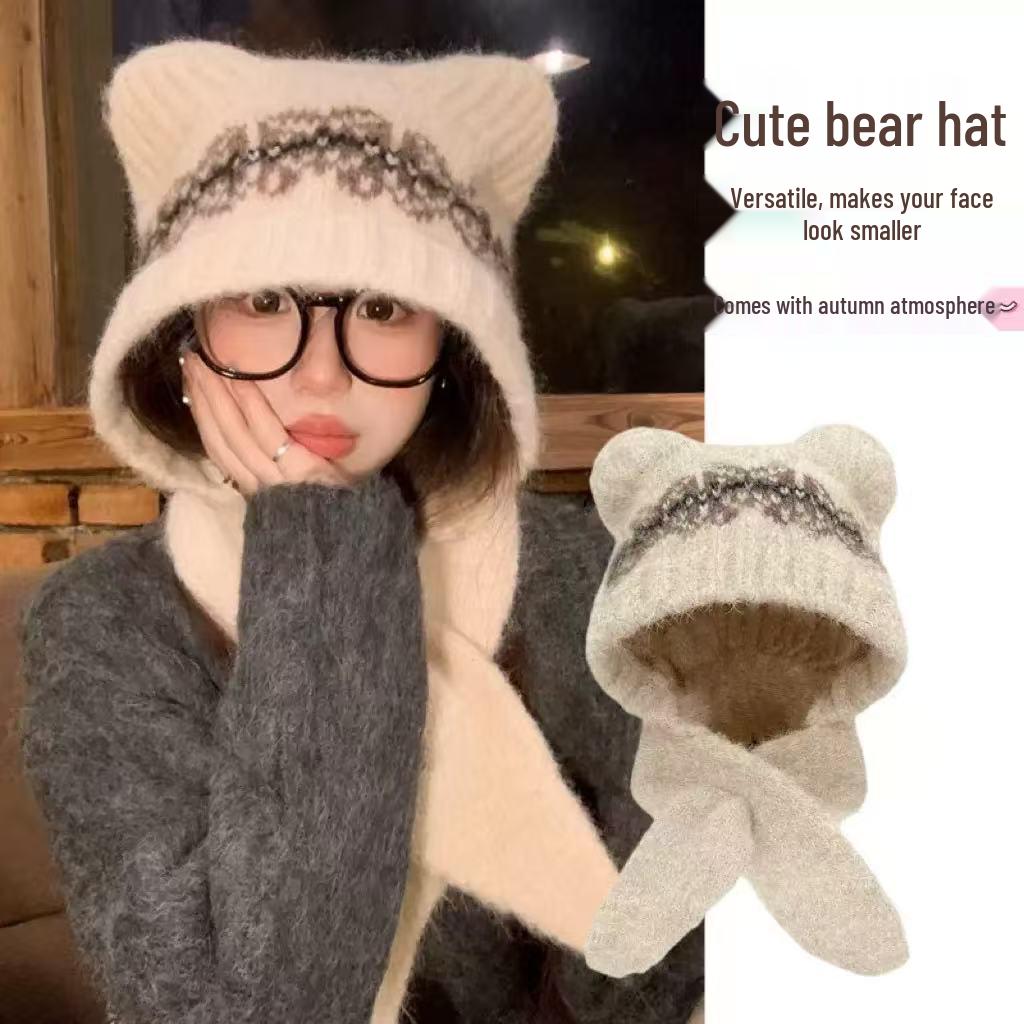 Damen Niedliche Kleine Bär Strickmütze: Warm, Winddicht, Ohrenschutz, Kältebeständig, Plüsch für Herbst und Winter
