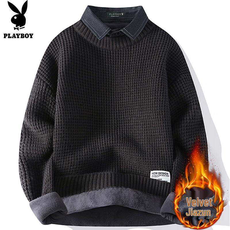 Playboy Men's Fleece-Lined Faux Two-Piece Sweater