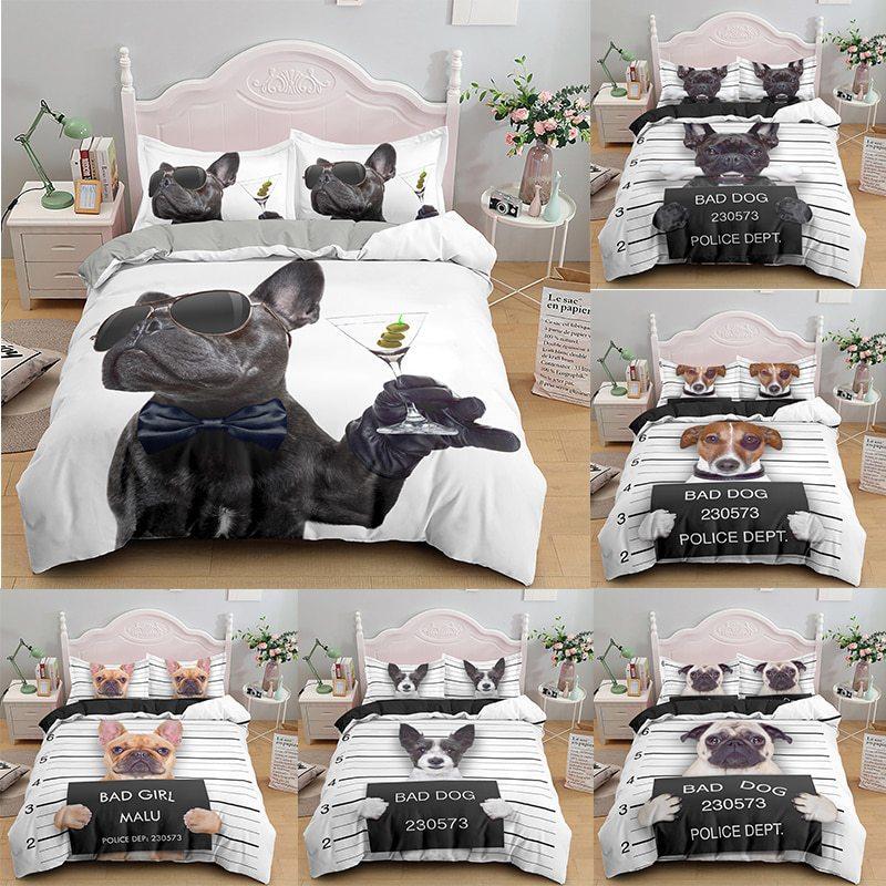 Digitaldruck Dreiteiliges Mode 3D Hunde-Bettwäsche-Set Bettbezug Kissenbezug