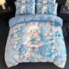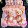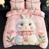 Milk Fleece Four-Piece Set, Large Version Digital Printing Cute Cartoon Single Double Quilt Cover, Bed Hat Three-Piece Set