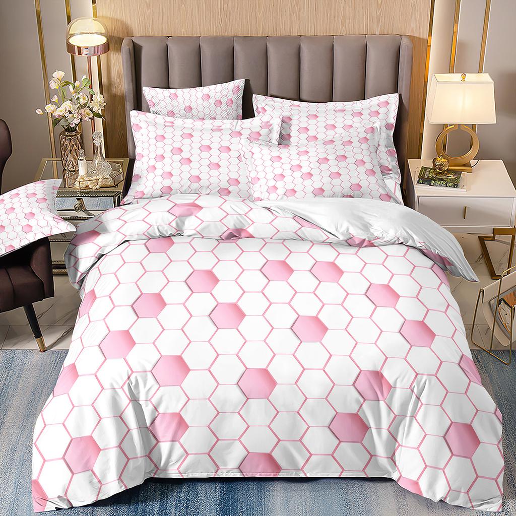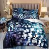 Abstraktes 3D-Druck-Bettwäscheset mit geometrischem Karomuster, vierteilig, dreiteilig