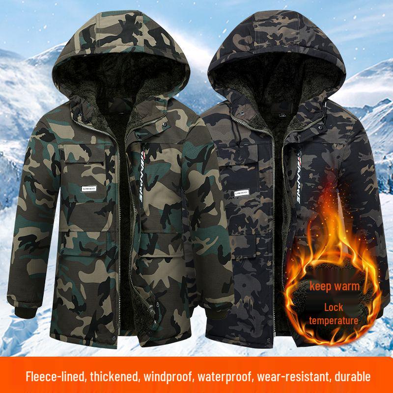 Camouflage Gefütterte Wasserdichte Baumwolljacke – Mittellang, Dick, Warm & Verschleißfest