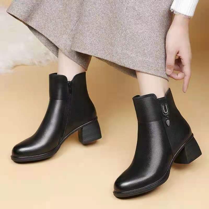 Frühling, Herbst und Winter 2025 neue Kurzstiefel mit dickem Absatz, Damen-High-Heel-Martin-Stiefel mit seitlichem Reißverschluss, vielseitige Damenstiefel, Samt-Baumwollstiefel
