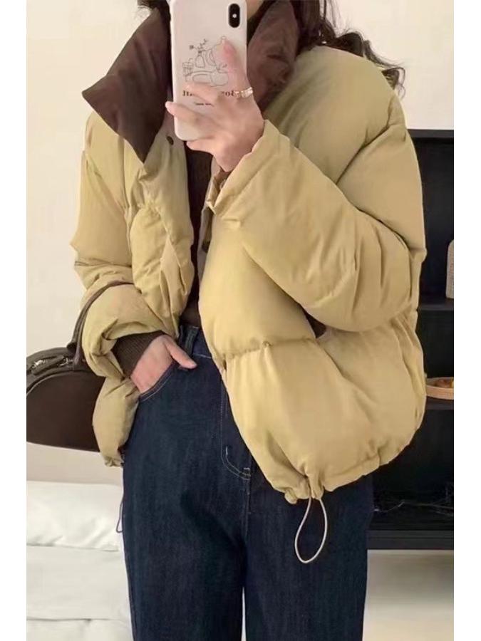 Kleine Colorblock Daunenjacke: Stehkragen Damenoberbekleidung im koreanischen Stil für Herbst/Winter