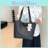 Capacity Simple Large Shoulder Bag With Solid Color Design And Decoration Scarf