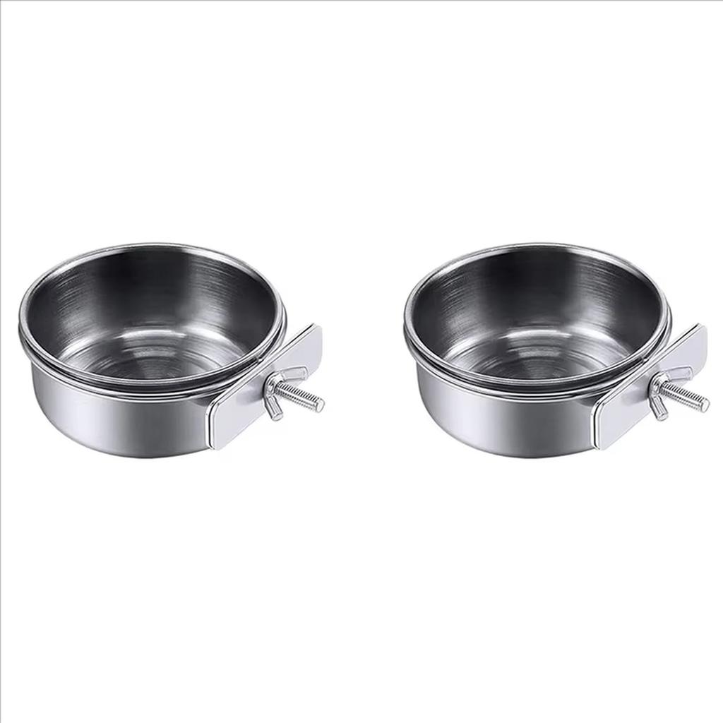 6 Pieces Stainless Steel Bird Feeding Dish Cups Parrot Feeder Parakeet Food Water Bowls With Clamp Holder & Bird Spoon
