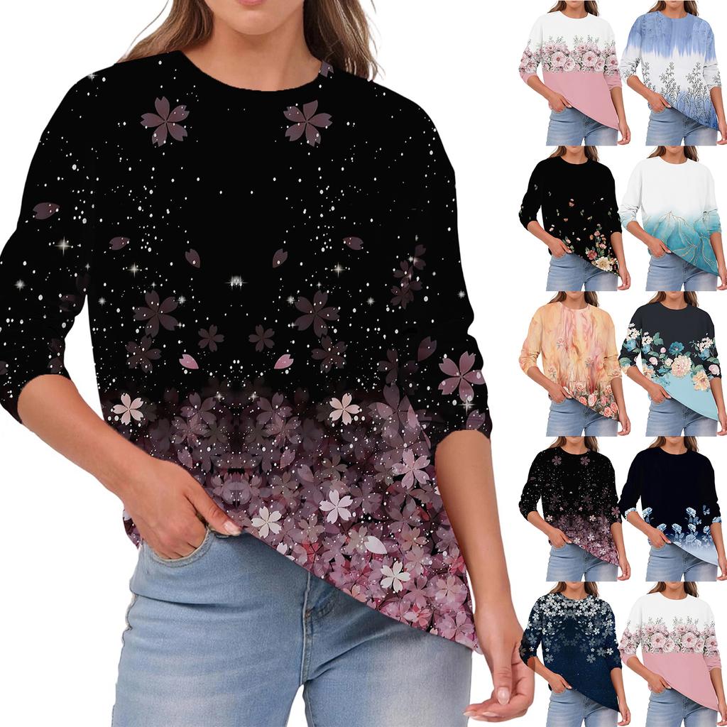 Damen Modisches Lässiges Rundhals Einfarbig Langarm Oberteil