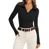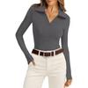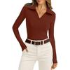 Damen Langarm V-Ausschnitt Hemd, Business Casual Slim-Fit Strickoberteil