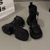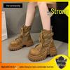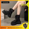 Leder-Denim-Plateau-Martin-Stiefel im europäischen Stil - Damen 2025 Neue höhenverlängernde Motorrad-Kurzstiefel, kleine Größen