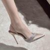 2025 Spitzschuhe Champagner Stilettoabsätze: Strass Seide Tief ausgeschnittene Einriemen-Sandalen für Damen.
