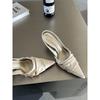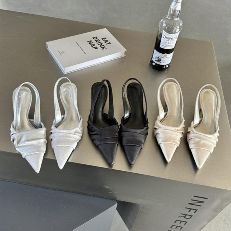 2025 Frühling und Herbst neue spitze Schuhe Kinder dünner Absatz Tasche Kopf Sandalen Damenschuhe Mode Temperament Feenwind Falten