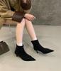 Französische Retro-Spitzabsatz elastische dünne Stiefel Damen 2025 Herbst und Winter neue Nischenmode vielseitige Schaft-Kurzstiefel