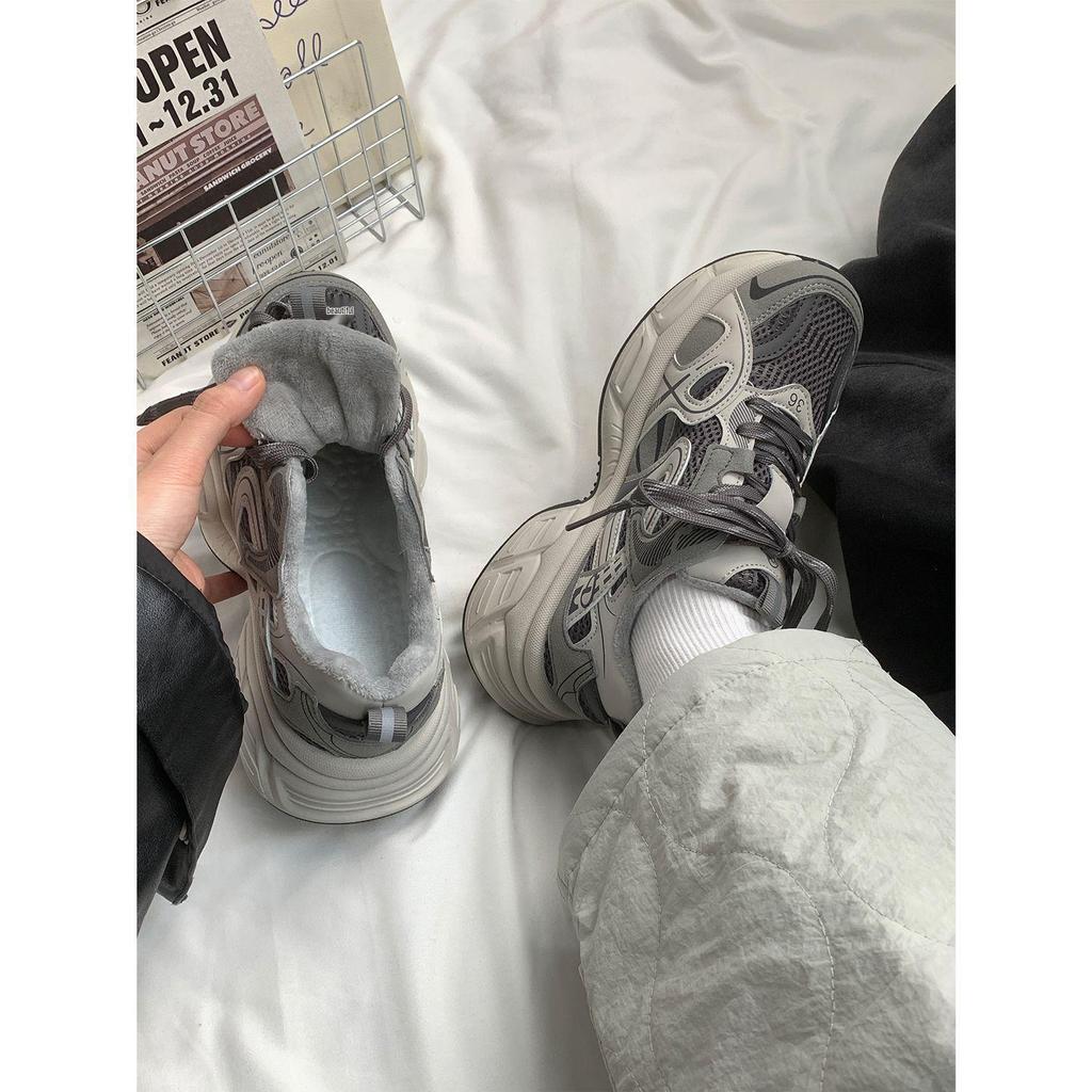Graue Fleecegefütterte Lässige Jugend-Dad-Sneaker mit dicker Sohle und Höhenerhöhung