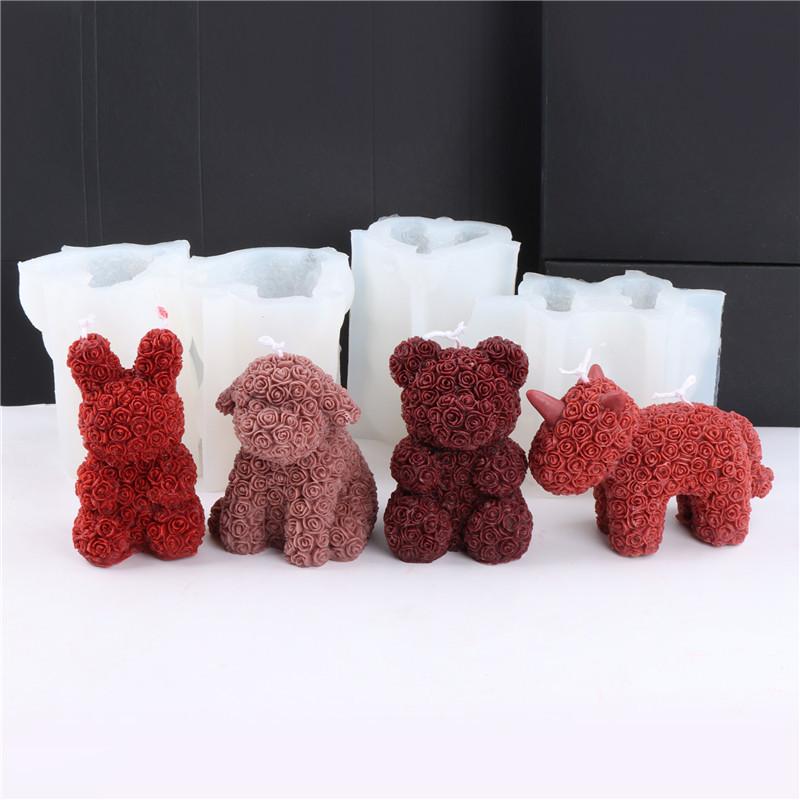 3D Valentinstag Liebe Rosenbär Kerze Silikonform DIY Silikon Frau Kussende Figur Hochzeit Handwerk Geschenke Deko