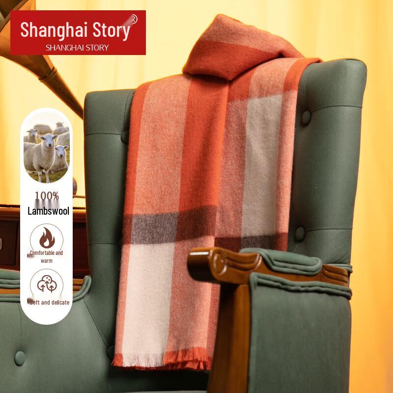 Shanghai Story Women's Pure Wool Plaid Scarf Shawl
