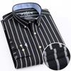 Herren Langarm Oxford Kariert Gestreift Arbeits Freizeit Hemd mit Tasche, Frühling Herbst Baumwollmischung Regular-Fit Button-Down Hemden