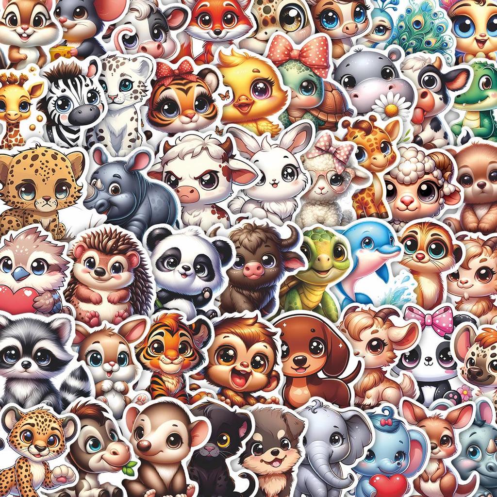 50 Niedliche Tieraufkleber mit großen Augen für Koffer & Laptops - Tiger- & Panda-Designs