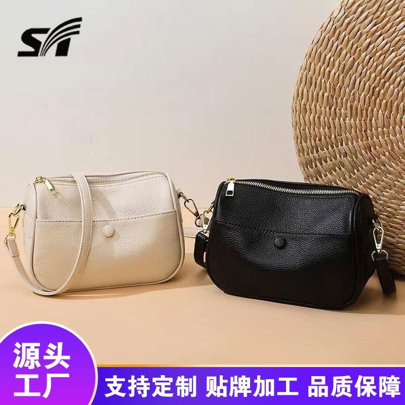 Bag new simple and fashionable multi-layer large-capacity women's bag shoulder bag first layer cowhide messenger bag bag