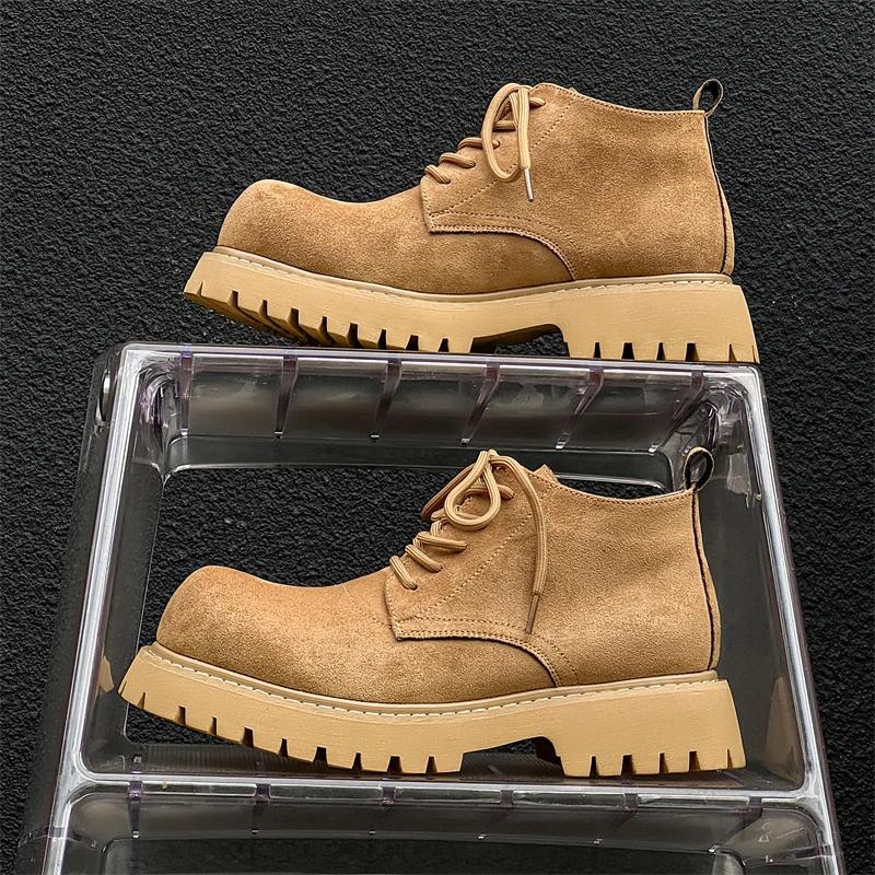 Markendesign Große Größe Hohe Qualität Quadratischer Absatz Plateau Punk Große Zehe Derby Britischer Stiefel Herren Schnürstiefeletten Herrenschuhe