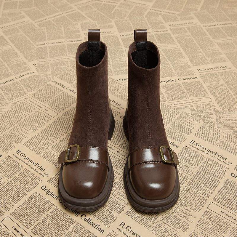 Temperament kurze Stiefel Damen Chelsea Boots 2025 Herbst und Winter neue elastische dünne Stiefel Sockenstiefel braune mittelhohe Stiefel Samt