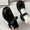 Schwarze britische Stil kleine Lederschuhe Damen Herbst und Winter 2025 neue Plateau-Slipper Samt Baumwollschuhe Mary Jane Schuhe