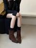 Neuer Spot neue spitze hochhackige kurze Stiefel Damen 2025 Leder erhöhte Hosenstiefel Damen dickhackige Spice Girls Herbst und Winter