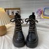 Klobige Schnür-Damen-Kurzschuhe Herbst Winter Leder Runde Zehenpartie Damen-Stiefeletten Bequem Hohe Qualität PU 39 Stiefeletten