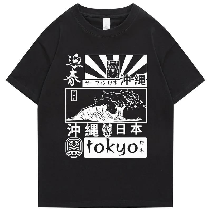 2025 Herren Japanisch Retro Tokio Wellenmuster bedruckt 100% reine Baumwolle Hip-Hop Kurzarm-T-Shirt Street Painting Kleidung