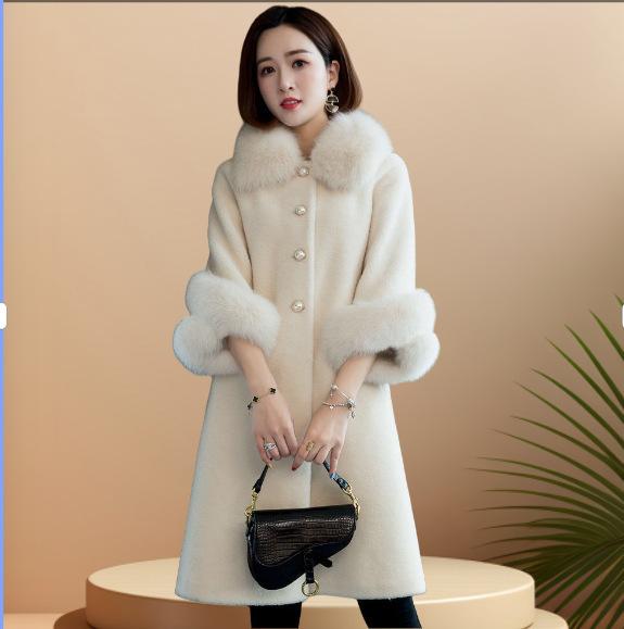 Winter new imitation sheep shearing fur coat long imitation fox fur coat large size women's clothing