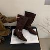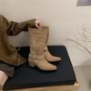 Retro Zwei-Trage-Ritterstiefel 2025 Herbst und Winter neu spitz geflochtene Gürtelschnalle dicker Absatz umgeschlagene Stiefel Damen