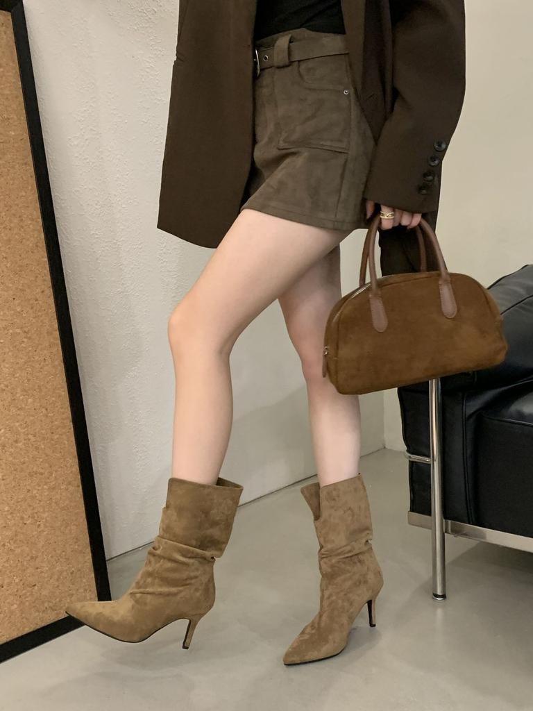 2025 Herbst und Winter neue Mode vielseitige Retro Stiefeletten koreanische Version Stiletto Schaft Stiefeletten plissierte Martin Stiefel
