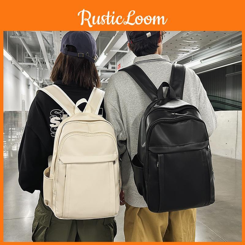 Solid Unisex Backpack Color Pu Material With Padded Straps For School And Trips