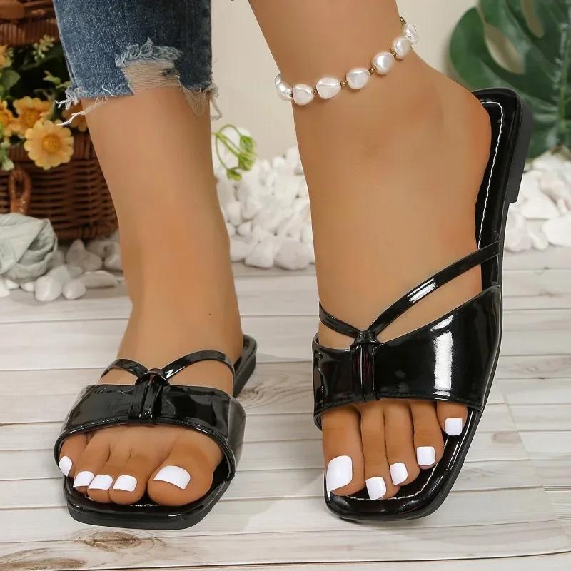 Mode Übergrößen Schuhe für Damen 2025 Sommer Neu Zehenfrei Damen Hausschuhe Heißer Verkauf Quadratische Zehenpartie Flach mit Sandalen Tägliche Strandhausschuhe