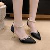 Mode 2025 Neue Französische Damen Perlen Baotou Sandalen Neue Spitzzehen High Heels Ausgehöhlt Ein Riemen Einzelne Schuhe