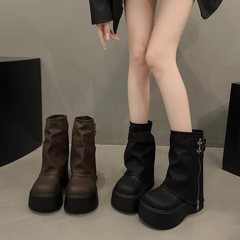 Punk Style Plateau Dicke Sohle Damen Moderne Stiefel Mode Knopf Kombination Spleißen Höhe Erhöhung Kurze Stiefeletten