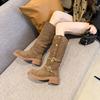 Neuer Stil Damen Langstiefel Modische zweiteilige Umschlagstiefel Mittelhoch Retro Vielseitig Dicke Sohle Motorradstiefel Mujer