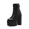 Mode Motorradstiefel Damen Leder Frühling Herbst Metallschnalle High Heels Schuhe Reißverschluss Schwarz Stiefeletten Frau Schnürung