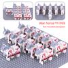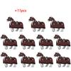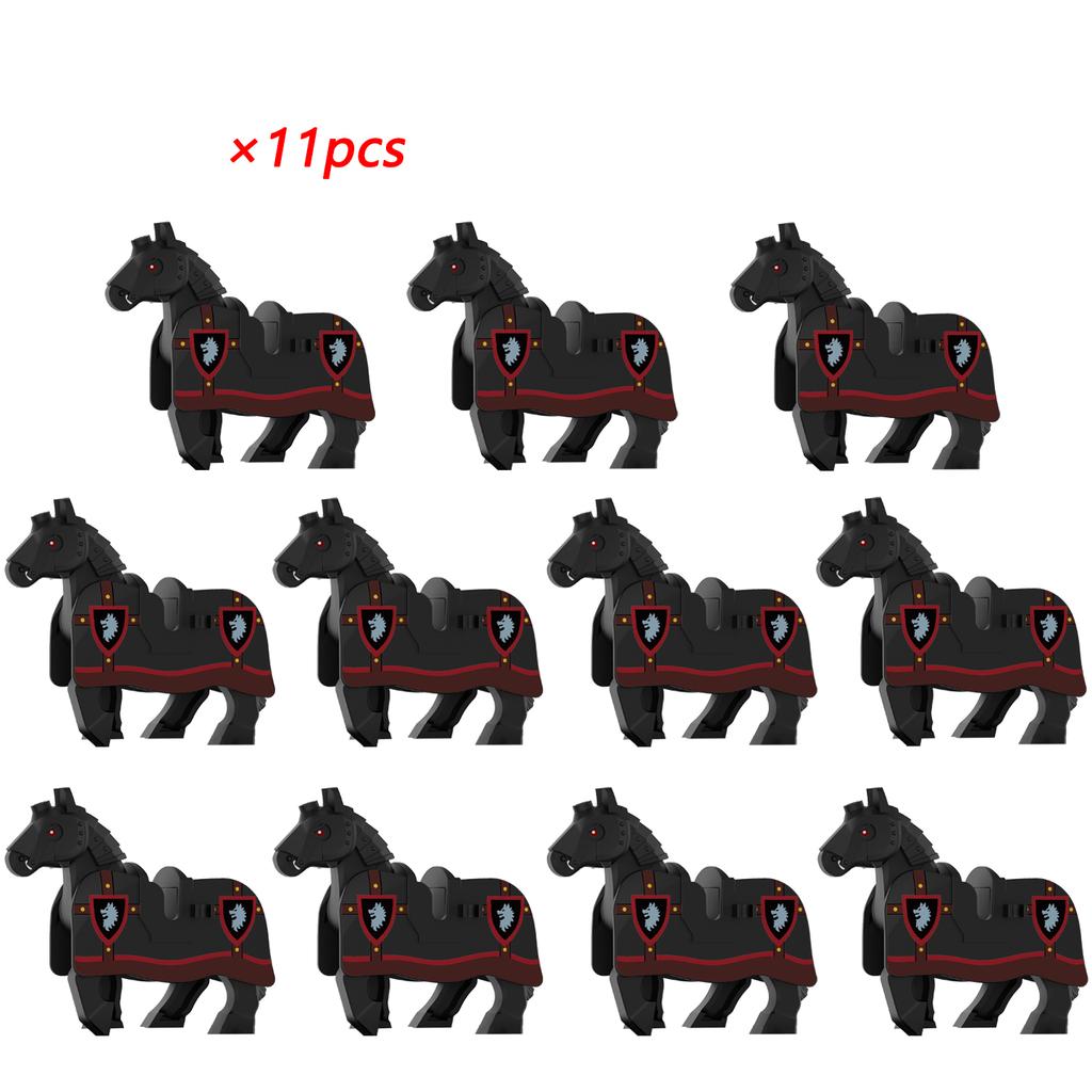 11 Stück Mittelalterliche Pferde Graue Körper Blaue Satteldecken Weiße Pferdeembleme Gelbe Verzierungen Baustein