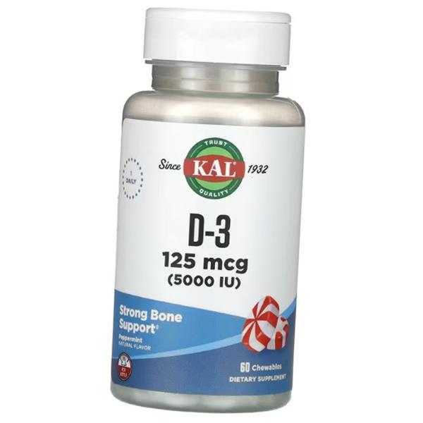 Витамин Д3, Vitamin D-3 5000 Chewables, KAL 60таб Мята перечная (36424065)