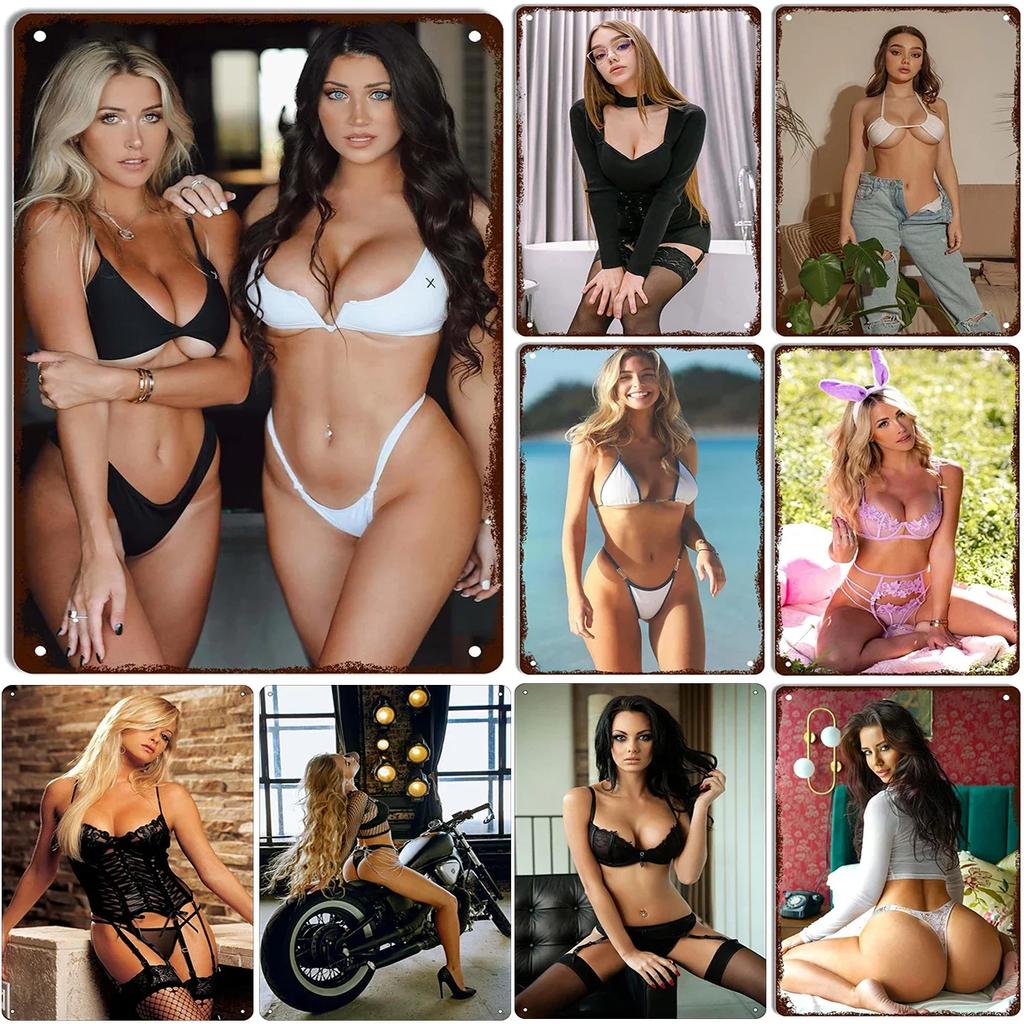 Vintage Pinup Sexy Girls Metall Blechschilder Plakette Platte Retro Wandposter für Man Cave Bar Pub Clubs Café Eisenmalerei Dekoration