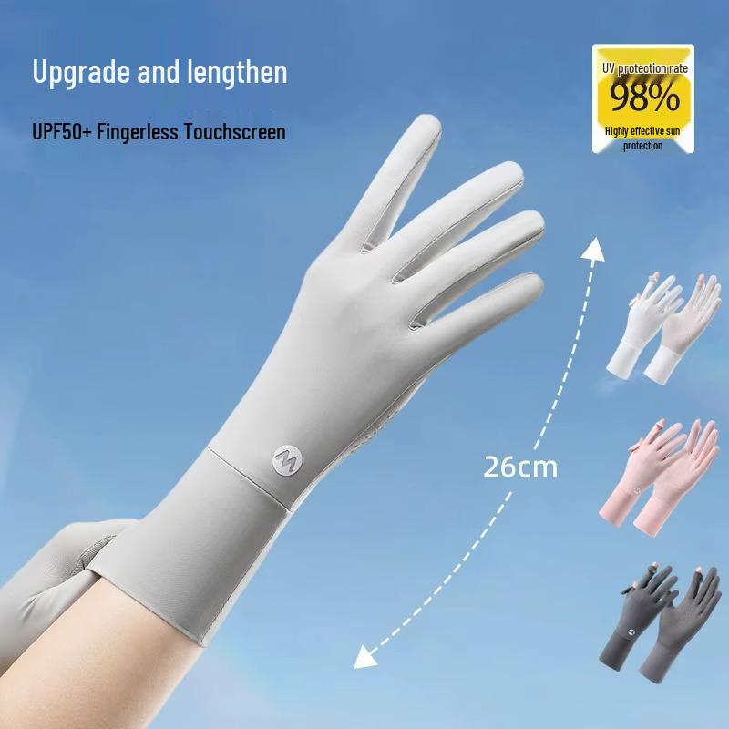 Eisseide Damen UV-Schutz Fingerlose Handschuhe - Atmungsaktiv, Dünn, Verlängert für Sommerliches Autofahren