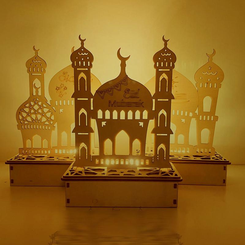 Hölzerne Eid-Dekoration Nachtlicht Ramadan Desktop-Ornament DIY LED-Lampe Handwerk Islamisch Muslimische Heimparty Dekoration Geschenke