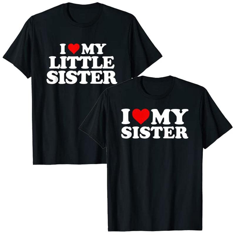 Ich Liebe Meine Schwester T-Shirt Ich Liebe Meine Kleine Schwester Grafik T-Shirt Oberteile Lustige Sprüche Buchstaben Gedruckte Outfits Familie Partnerlook Kleidung