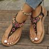 Lucyever Sommer Zehensteg Böhmische Sandalen Damen Mode Schnur Perle Flache Absätze Sandalen Frau Rutschfeste Sohle Strand Flip Flops Mujer