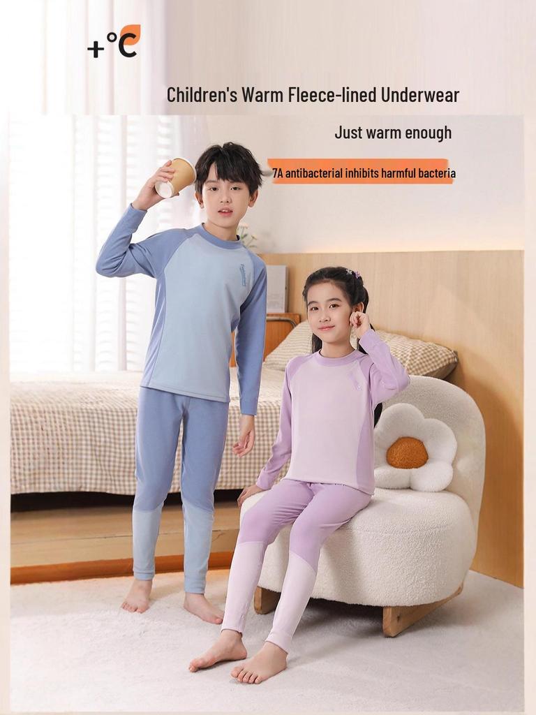 Children's Thermal Underwear Set: Boys' Spliced Pajamas & Girls' Antibacterial Autumn Wear