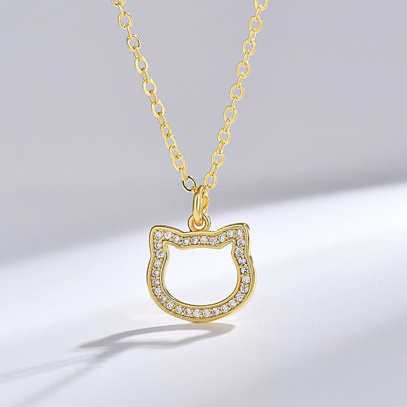 Luxury Niche Women's KT Cat Pendant Necklace with Inlaid Diamonds - Cute, Versatile Fashion Jewelry Gift