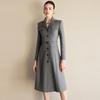 Damen High-End Graues A-Linien Anzugkleid - Frühling Formell, Professionell, Taillenverschmälernd, Elegant