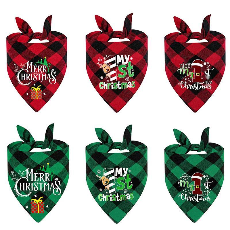 Personalisierter karierter Weihnachts-Haustierschal - Anpassbares Dreiecks-Lätzchen für Hunde und Katzen