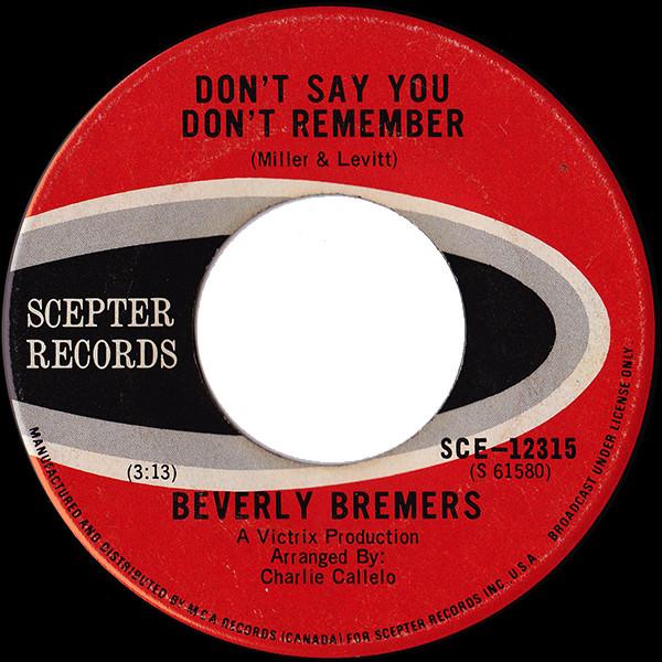 7inch Record BEVERLY BREMERS - Don't Say You Don't Remember / Get SCE12315 SCEPTER 1971 Canada Pop Used